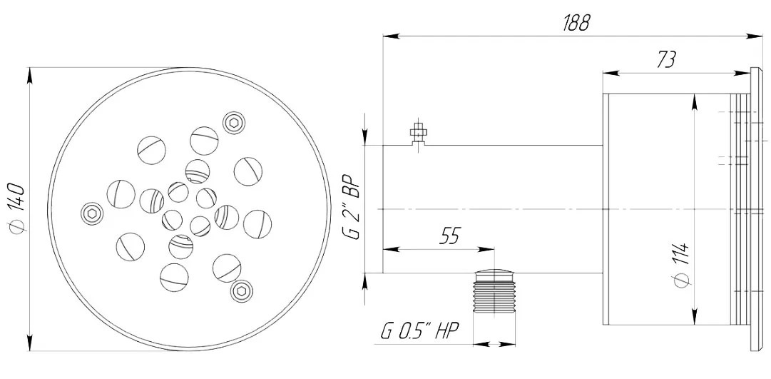 Гидромассажная форсунка для бассейна изготовлена из нержавеющей стали, марки AISI 304. Используется при организации зоны гидромассажа в частном или общественном бассейнах. У форсунки есть отвод для подсоса воздуха, таким образом, приобретая дополнительно - регулятор для гидромассажной форсунки, есть возможность регулировать подачу воздуха, или перекрывать доступ воздуха в поток воды. Позволяя форсунке засасывать воздух вы получаете оздоровительный гидро/аеро массаж. Массаж с воздухом более мягкий.
