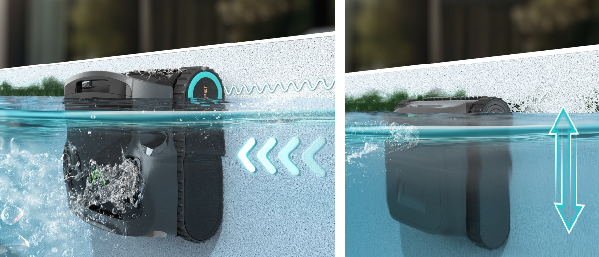Мобильное приложение позволяет управлять пылесосом по Wi-Fi или Bluetooth: выбор режимов; карта сканирования бассейна; отчёты об уборке; обновления прошивки; состояние заряда и уведомления.