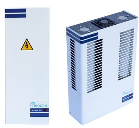 Генератор озона Triogen. В комплект входит блок управления с модулем коронного разряда, который охлаждает вентилятор. При работе генератора в нем помощью напряжения, подаваемого с блока управления, формируется электрический коронный разряд. Под действием разряда молекулы кислорода, превращаются в озон. Триоген обеспечен регулятором расхода озона в интервале 50 - 100 %.
