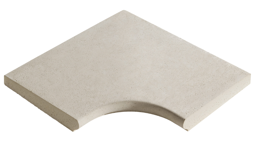 Угловой бортовой элемент изготовленный из натурального камня. Изделия представляют собой реконструированный камень, созданный по оригинальным образцам и эксклюзивным разработкам специалистов Alkern.