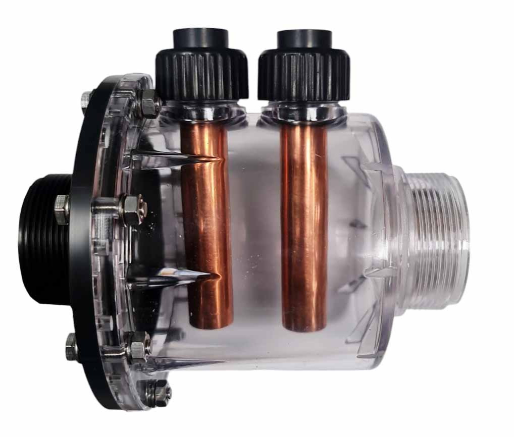 Бесхлорная система стерилизации, дезинфекции и контроля качества воды в плавательных бассейнах объемом до 75 000 литров. Обеззараживание воды в бассейне проводится за счет применения методов ионизации и гидролиза (с помощью серебра и меди, естественных окислителей).