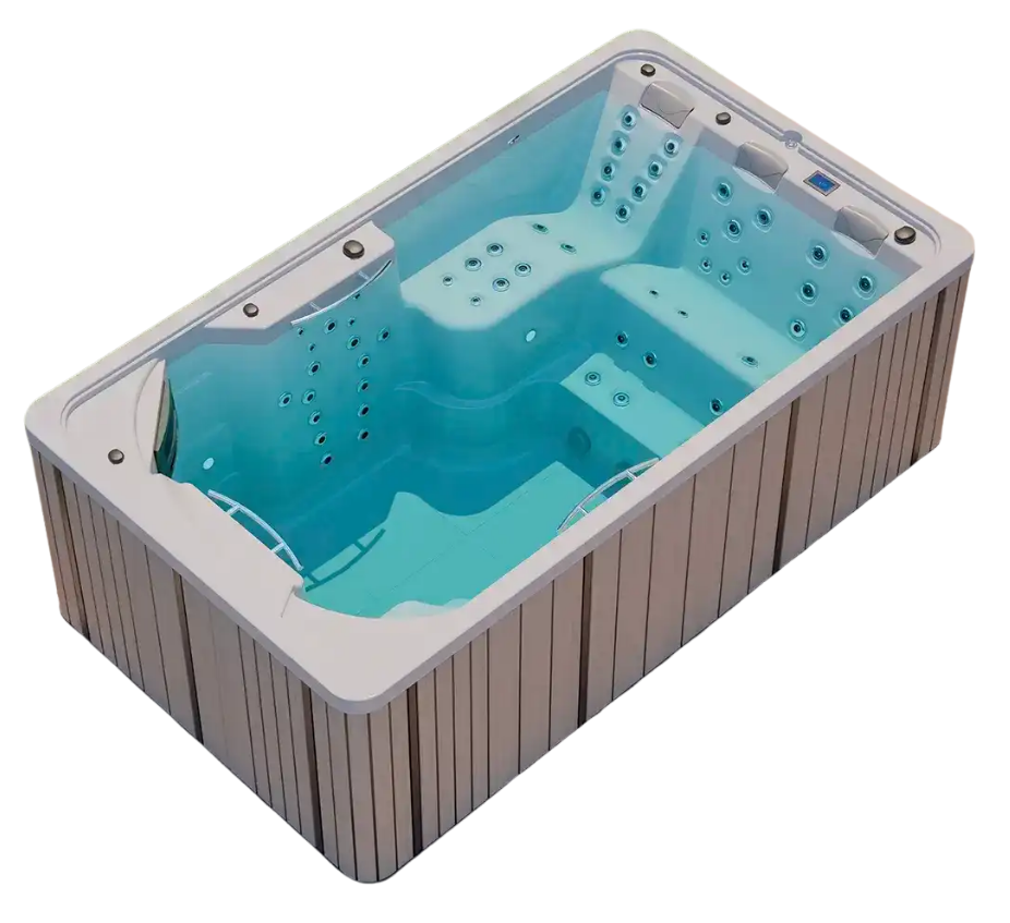 Swimspa Fitness Spa сочетает в себе функции SPA, гидромассажа, бассейна и фитнес-модуля. Подходит для расслабления благодаря мощными гидромассажными форсунками и различным режимам массажа (микро-манжетный массаж, вращательный дренажный и противо-стрессовый массаж).