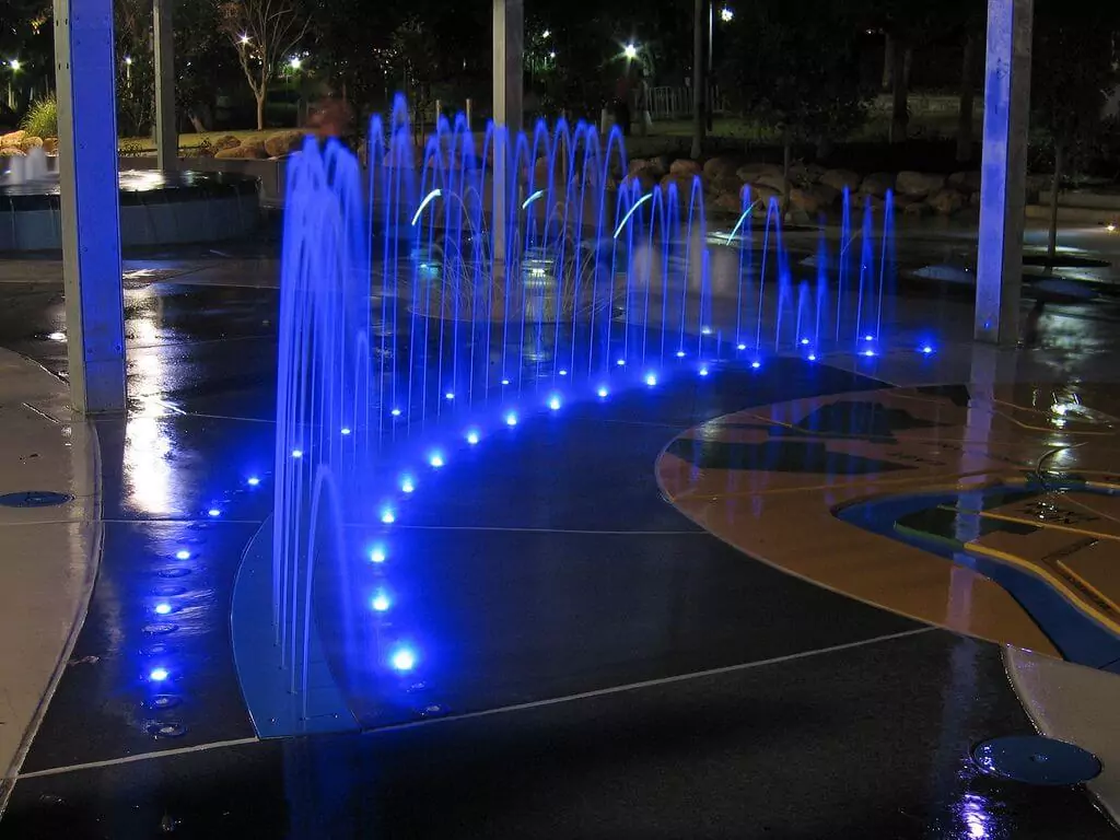 Без подсветки пешеходные фонтаны становятся буквально бесполезными в темное время суток. Насладиться струями воды в полной мере нельзя.