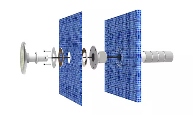 Светодиодный прожектор Aquaviva LED227C 252LED (18 Вт) RGB можно монтировать в бассейнах с соленой водой, так как передняя панель корпуса прожектора сделана из нержавеющей стали 316 марки.