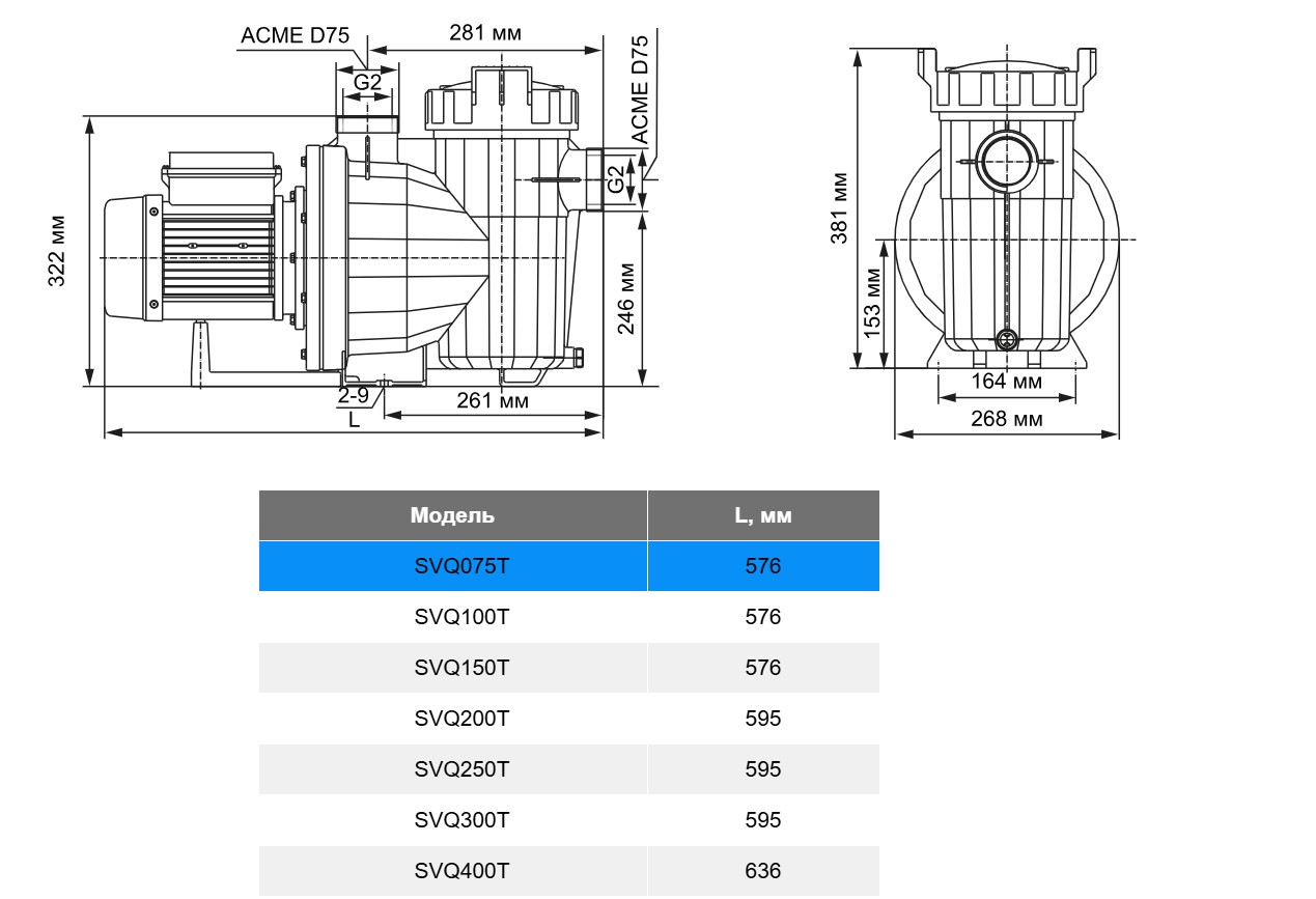 Бренд: AQUAVIVA,Подключение: боковое,Производительность, м3/час: 27 Категория: Aquaviva LX SVQ075Т (380 В, 10 м3/год, 0.55 кВт) насос для бассейна