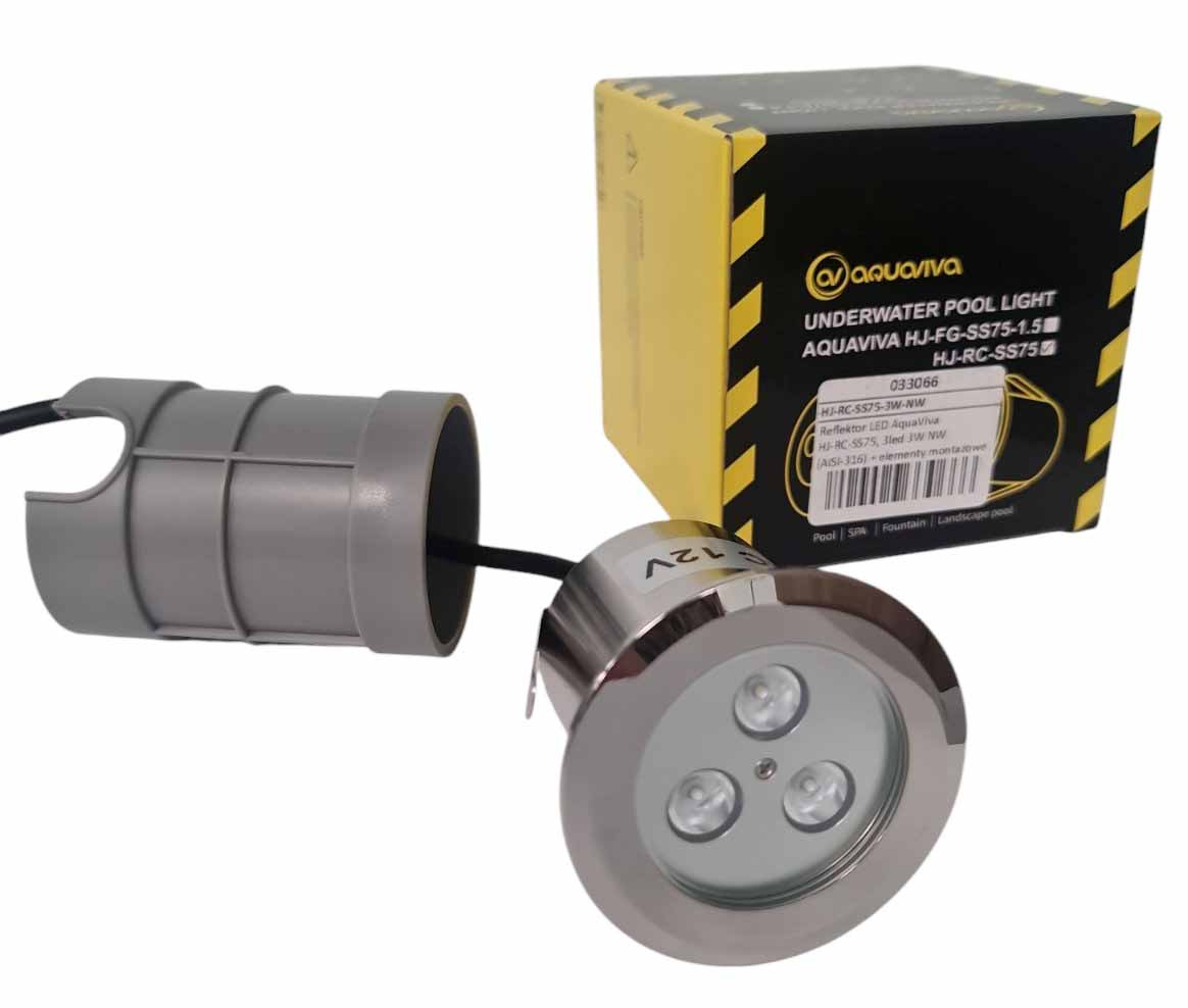Гарантия на прожекторы AquaViva LED – 12 месяцев. В комплекте с прожектором есть закладная, также прожектор можно установить в трубу 50 мм.