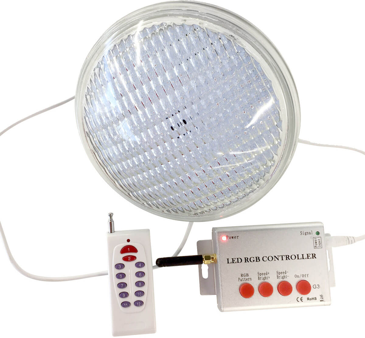 AquaViva SL-P-C1 пульт с блоком управления для ламп PAR56 оснащен блоком управления, выдвижной антенной ДУ и индикационной лампочкой.