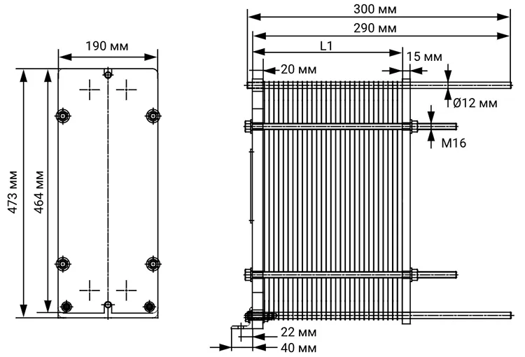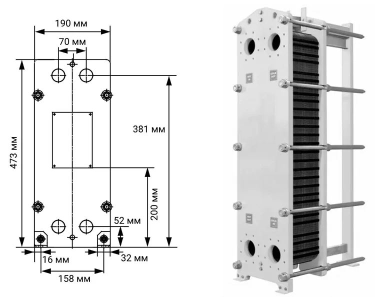 • Подключение теплоносителя (вход/выход) – DN32 резьбовое BSP / 316L /PN10