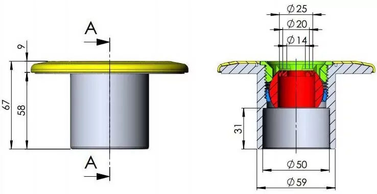 Подключение – вклейка в трубу диаметром 63 мм (РN-6).