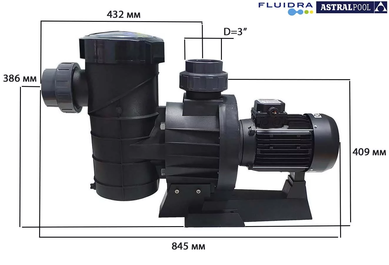 Самовсасывающий высокопроизводительный насос с префильтром, для циркуляции воды в системе фильтрации бассейна объемом до 312 м3. Модель разработана для применения в общественных бассейнах с постоянными высокими нагрузками. В конструкции гидроблока применен технический термопластик для долговечности и надежности конструкции.