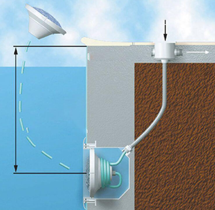 Данный вид прожекторов оснащены специальными уплотнительными кольцами, поэтому их можно использовать для пленочных бассейнов.