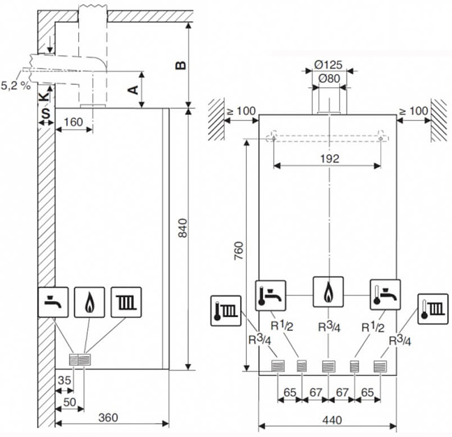 Котел Buderus Logamax Plus GB172i – 24 это новинка среди настенных газовых конденсационных котлов, мощностью 25 кВт. Котел предназначен только для отопления, может работать в комбинации с бойлером косвенного нагрева для получения ГВС.