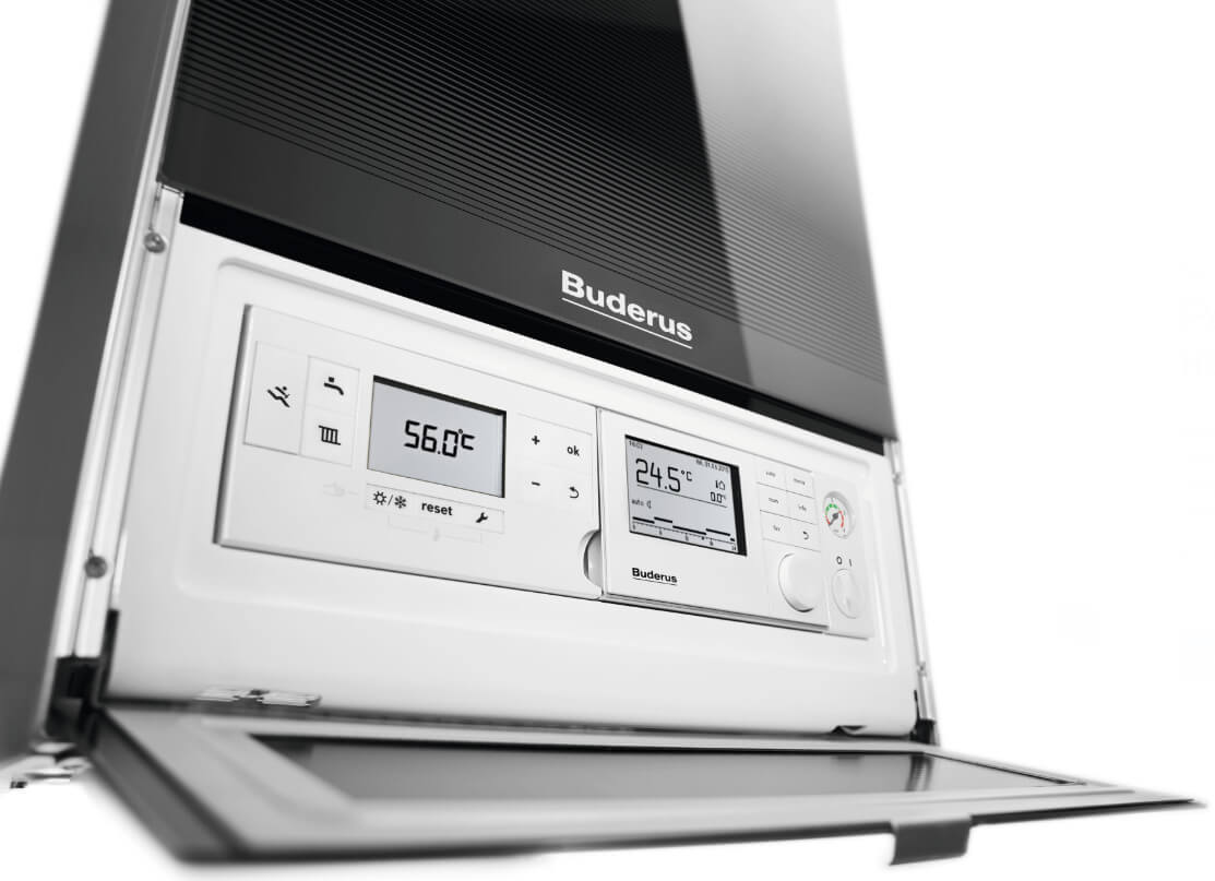 Система управления котлом скрывается в нижней части котла Buderus Logamax Plus GB172 i -24 за откидывающейся панелью, встроена автоматика BC25, обеспечивающая управление котлом и простоту настроек нужных параметров.