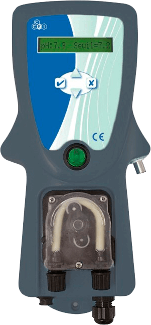 Перистальтический дозирующий насос анализирует pH и регулирует в соответствии с предварительно установленными значениями (доступно 4 значения).