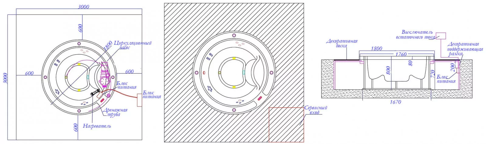 Встраиваемая гидромассажная ванна переливного типа, круглой формы, с подсветкой. Диаметр - 1800 мм. Чаша выполнена из акрила. Ванна рассчитана на 4 посадочных места, при этом купающиеся смогут свободно передвигаться внутри ванны. Страна производитель – Австралия.