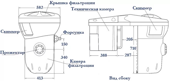 Теперь для установки системы очистки воды в бассейне нет необходимости копать приямок и делать отдельное помещение для размещения в нем оборудования, и не нужно тянуть трубы. Так же вам не придется тревожить уже существующую бетонную чашу для монтажа закладных элементов.
