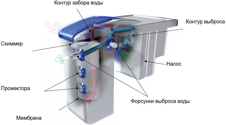 Теперь для установки системы очистки воды в бассейне нет необходимости копать приямок и делать отдельное помещение для размещения в нем оборудования, и не нужно тянуть трубы. Так же вам не придется тревожить уже существующую бетонную чашу для монтажа закладных элементов.