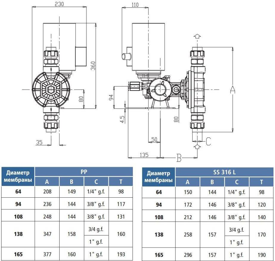 Многофункциональный насос-дозатор производительностью до 220 л/час мембранного типа.