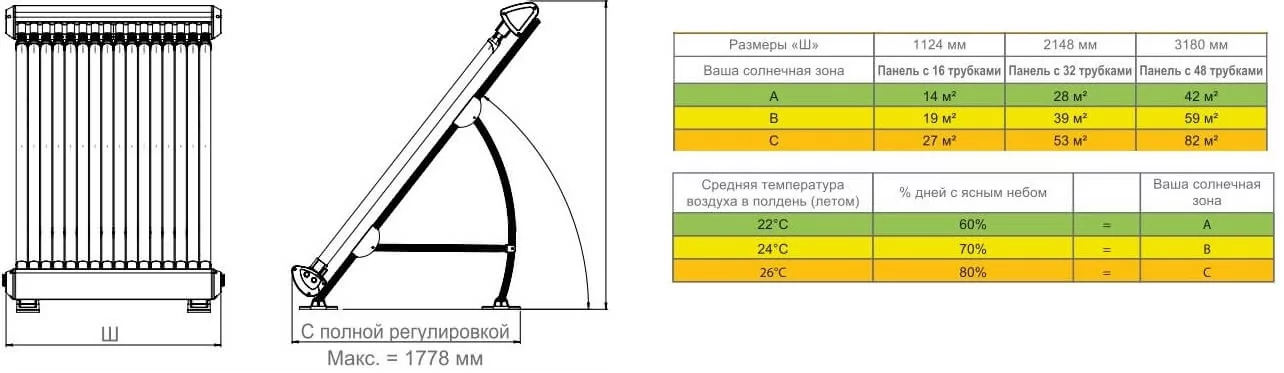 Благодаря алюминиевой регулируемой раме, из анодированного алюминия толщиной 3 мм, устанавливается точный угол наклона коллекторов по солнцу и обеспечивается максимальная эффективность управления до 92% энергии солнца.