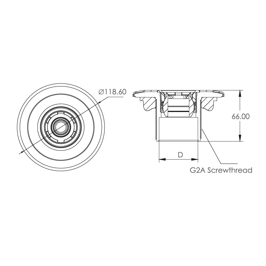 Форсунка имеет круглую форму и комплектуется монтажной гайкой и уплотнительным кольцом для герметичной установки в стенку бассейна.