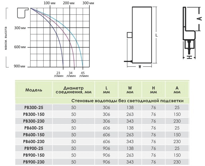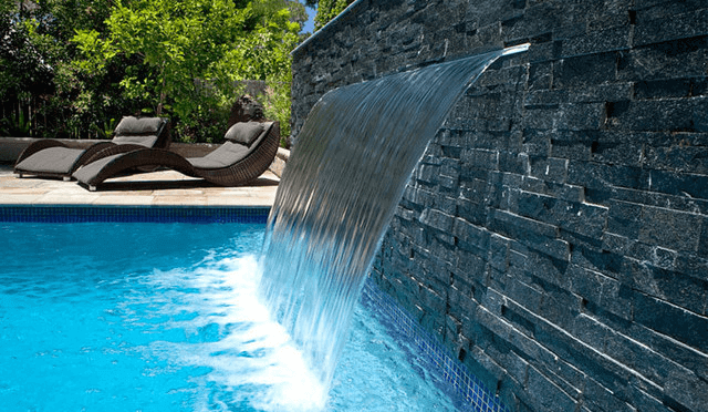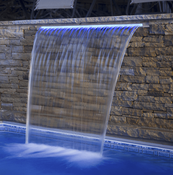 Декоративный стеновой водопад для бассейна со светодиодной подсветкой.