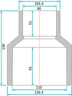 Габаритные размеры ERA редукция длинная ПВХ Ø 110х90 мм: