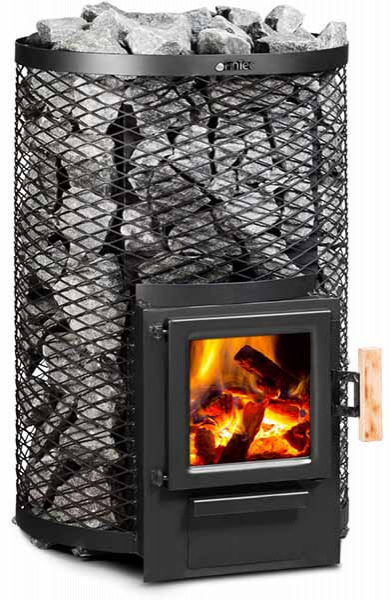 Дровяная печь для сауны обеспечивает длительное горение и цикличный нагрев воздуха в помещении.