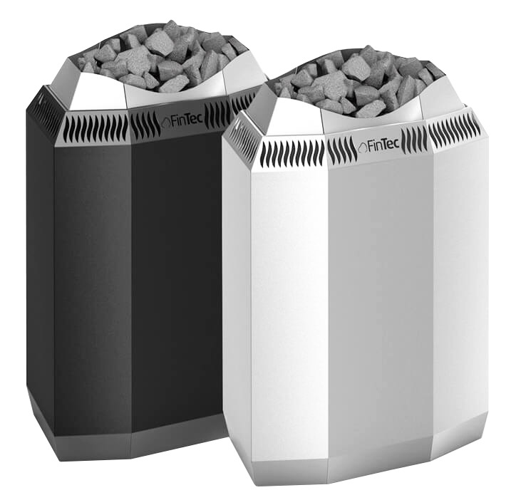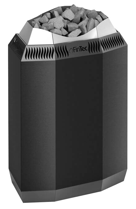 FinTec Kaja поставляется в виде настенной каменки с кронштейном, но ее можно превратить в стоячую каменку, приобретя ножки с нержавеющей стали. Большой объем камней - около 30 кг гарантирует оптимально идеальный климат в сауне.