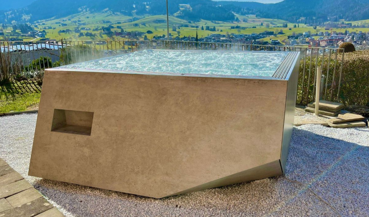 Эксклюзивная SPA-ванна из нержавеющей стали с эффектом Infinity и полным набором современных функций. Конструкция премиум-уровня рассчитана на 4–5 человек и оснащена 110 аэромассажными и 4 гидромассажными форсунками, RGBW-подсветкой и интеллектуальной системой управления.