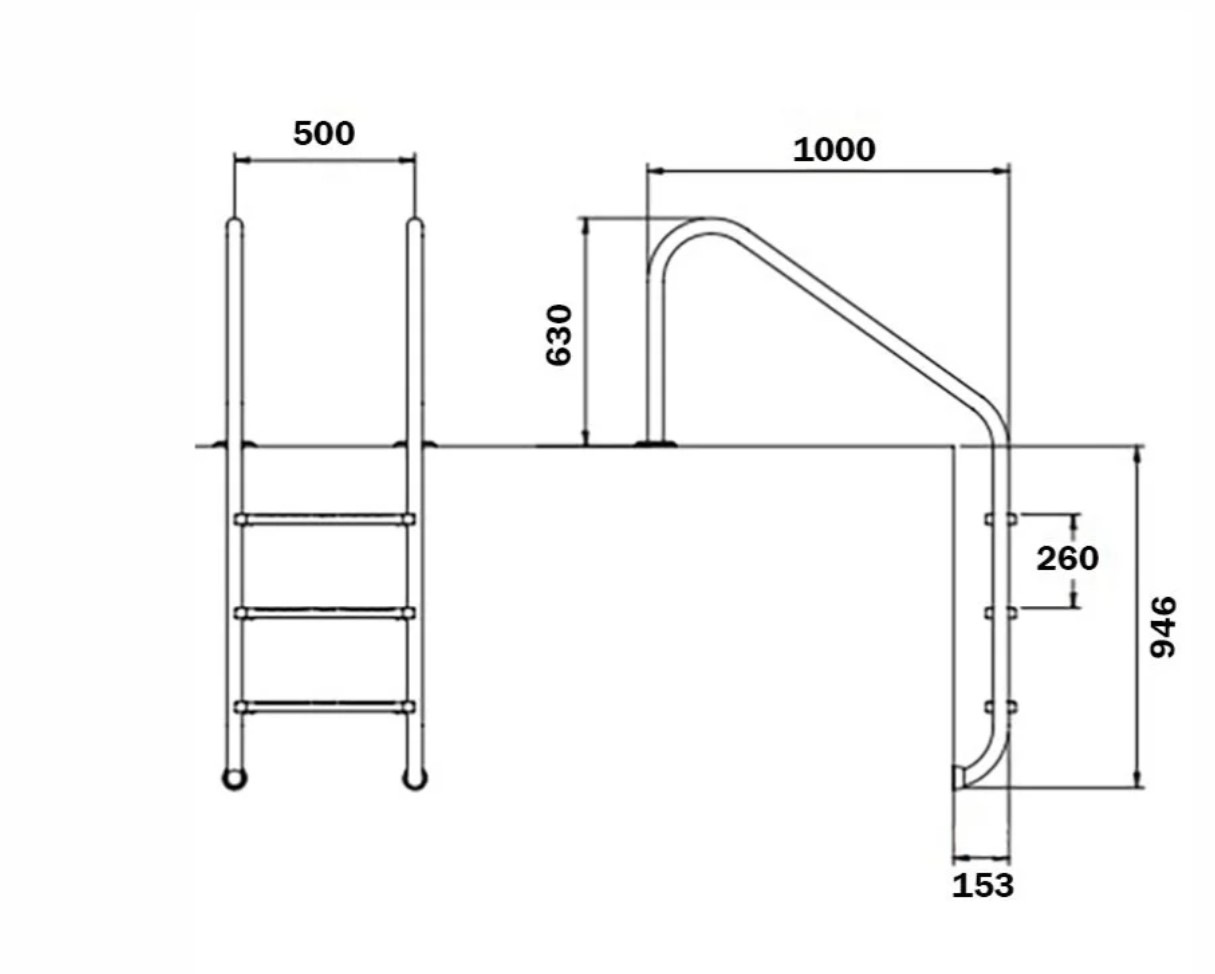 Лестница предназначена для полностью заглублённых переливных бассейнов с широким бортом.