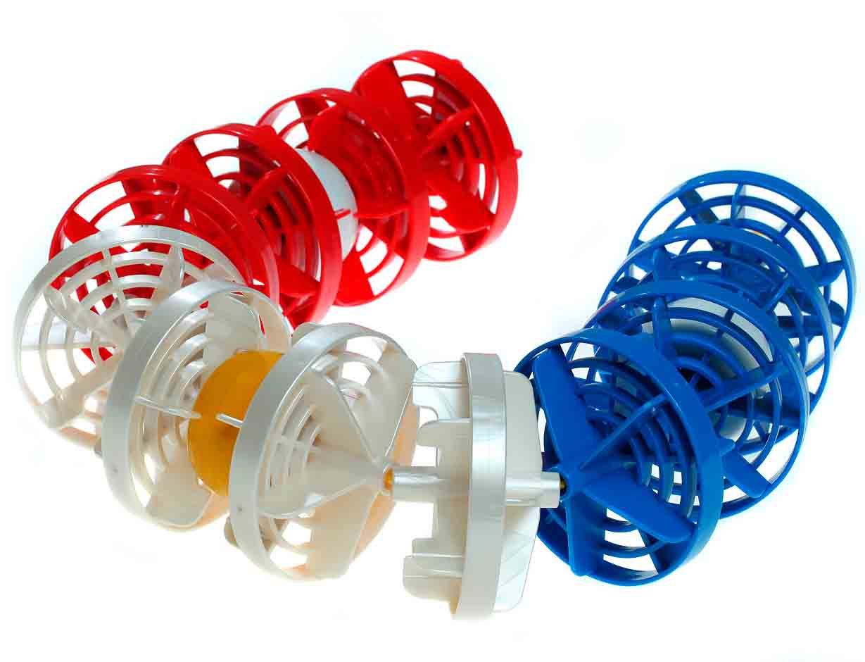 Волногасители изготовлены из пластика разных цветов, но чаще всего ярко-красного, желтого синего.