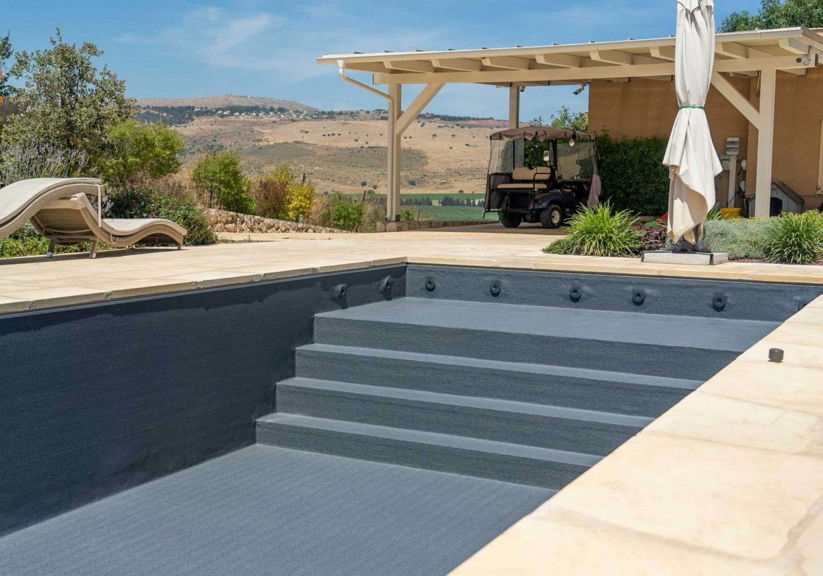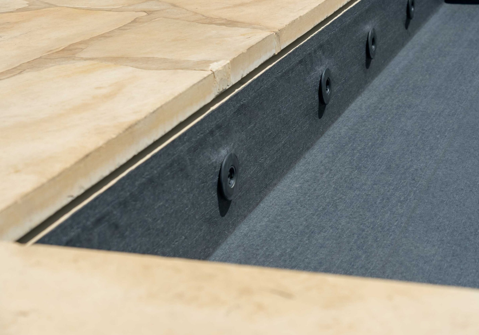Гидроизоляционная мембрана HaogenPlast предназначена для облицовки чаши как существующих бассейнов, так и новых. StoneFlex Bazelete имитирует натуральный камень — после заполнения водой лайнер приобретает глубокий сине-серый оттенок, придающий бассейну поразительную элегантность.