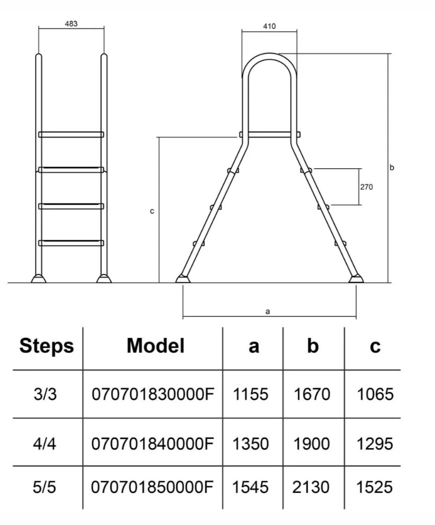 Бренд: Flexinox ,Количество ступеней: 3,Тип: Лестницы из нержавейки Категория: Hayward AISI 304 лестница 5 cтупеней для наземных бассейнов