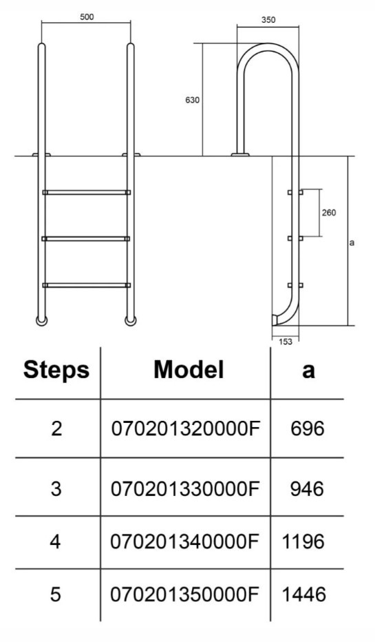 Лестница для бассейна Hayward изготовлена из нержавеющей стали 316 марки.