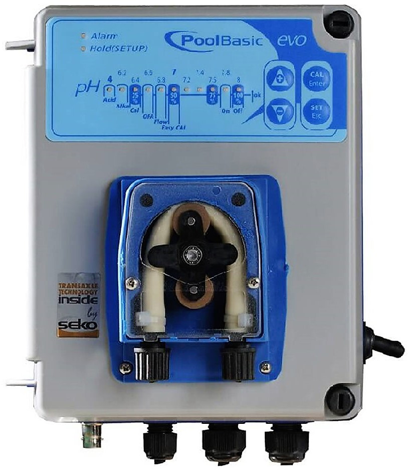 Измерительно-дозирующие станции Pool Basic Evo pH (для дозирования pH) для частных бассейнов. Надежная система размещения насосов-дозаторов и других инструментов в специальном корпусе, обеспечивает легкий монтаж и эксплуатацию устройства.