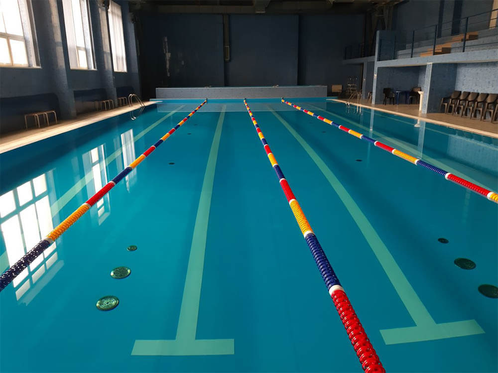 Канаты пролегают по всей длине бассейна и закрепляются на торцевых стенках анкерами.