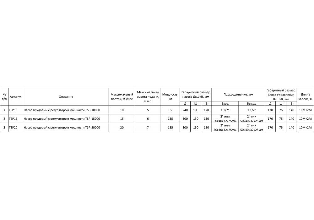 Jebao TSP-20000 - это погружная модель насоса для пруда с регулятором мощности. Его можно использовать для прудов, фонтанов, а также водопадов. Данная модель характеризуется низким энергопотреблением, тихой работой, при этом насос способен генерировать большой поток воды. Напор возможно регулировать. В случае если отсутствует вода, насос автоматически выключается. Также в случае блокировки ротора двигатель автоматически выключается. Важным преимуществом данной модели является возможность её использования как с морской, так и с пресной водой. Вал насоса изготовлен из керамики, благодаря чему способен прослужить длительный срок. Блок управления с 3-мя кнопками находится непосредственно на корпусе насоса. Также на блоке управления имеется LED индикация работы. Индикатор показывает работу, простой, и ошибку. Допускается работа насоса при попадании в него частиц размером до 6 мм, для того чтобы избежать попадания в насос более крупных частиц в комплект поставки входит решетка для входного отверстия. Входное и выходное соединение находится непосредственно на корпусе.