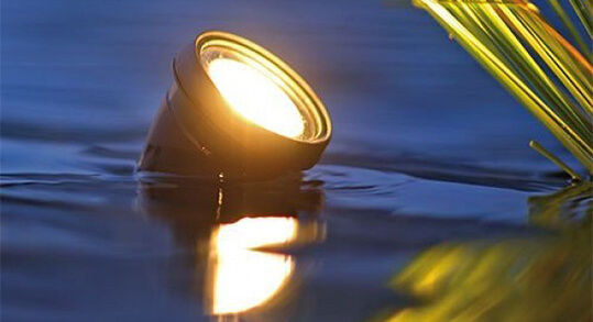 Светодиодный прожектор для пруда можно устанавливать, как на берегу пруда, так и непосредственно в воде. Это делает возможным водонепроницаемый класс защиты IP44.