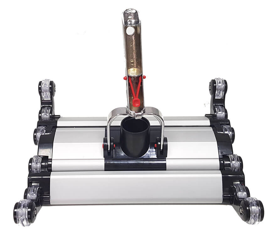 Используется для чистки дна бассейна. Корпус щетки состоит из алюминиевых ламелей, по бокам расположены колесики (по 6 штук с каждой из сторон), при взаимодействии эти элементы позволяют щетке мобильно (с минимальным усилием) переходить с зоны дна на стены, при этом очищая труднодоступный стык. Позволяет чистить основание стены.