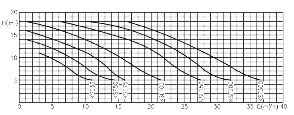 В конструкции насоса используются материалы устойчивые к коррозии, допускается использования с морской/соленой водой. Сальник выполнен из нержавеющей стали марки AISI 316, крыльчатка из пластика Noryl. Возможна установка KSE 200T выше уровня воды до +2 м.