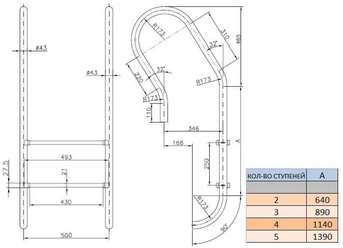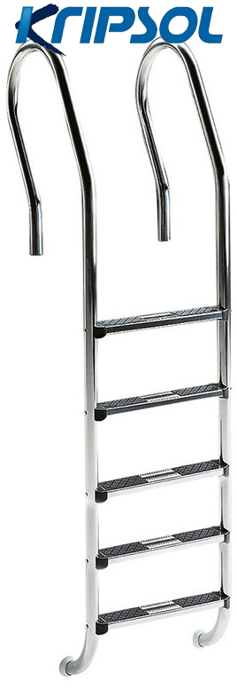 Лестница для бассейна испанского производителя Kripsol изготовлена из нержавеющей стали марки AISI 304. Таким образом, покрытие надежно защищено от воздействия химических реагентов.