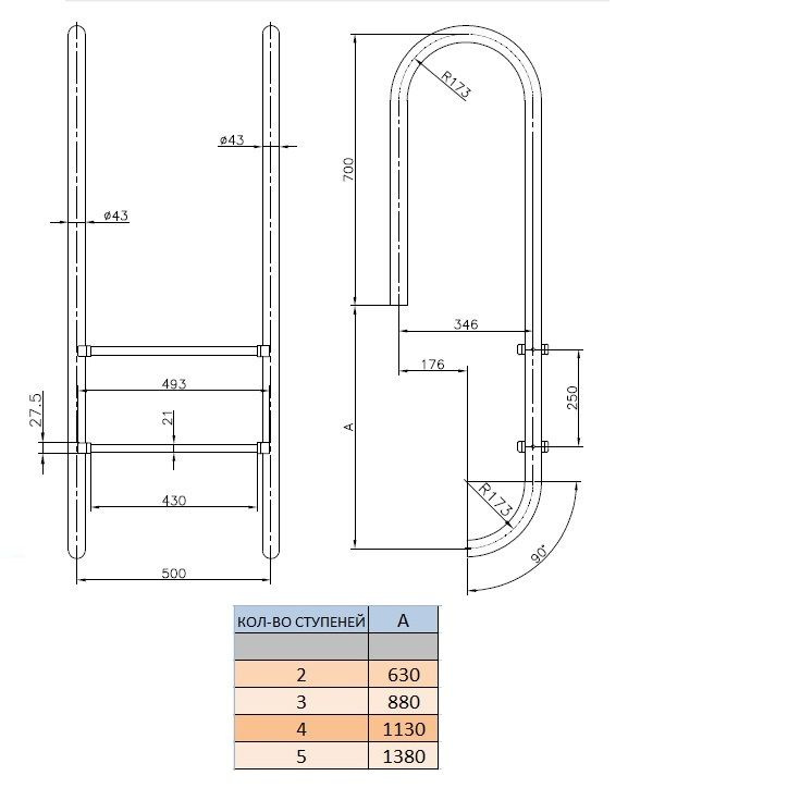 Лестница для бассейна испанского производителя Kripsol изготовлена из нержавеющей стали марки AISI 316. Таким образом, покрытие надежно защищено от воздействия химических реагентов. Может использоваться в морской, хлорированной воде.