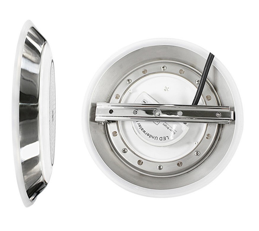 Прожектор Aquaviva LED 546-2 выполнен в корпусе из нержавеющей стали, подходит для установки как в бассейнах облицованных плиткой/мозаикой, так и ПВХ лайнером.