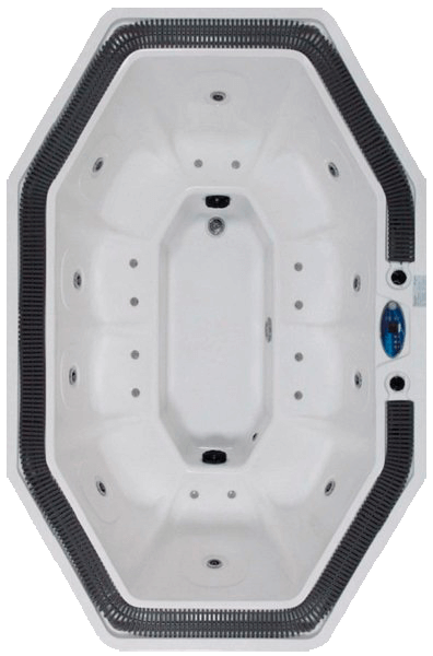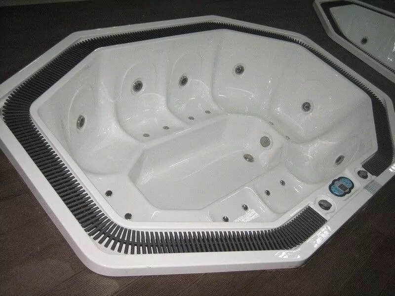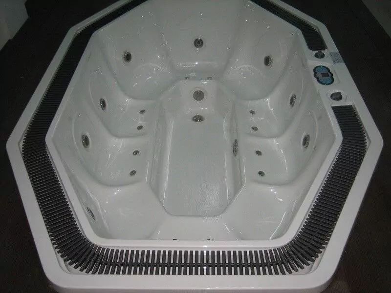 Встраиваемая гидромассажная ванна переливного типа, шестиугольной формы, с подсветкой. Размеры чаши 2220х2220х980 мм. Чаша выполнена из акрила. Ванна рассчитана на 10 мест. Страна производитель – Австралия.