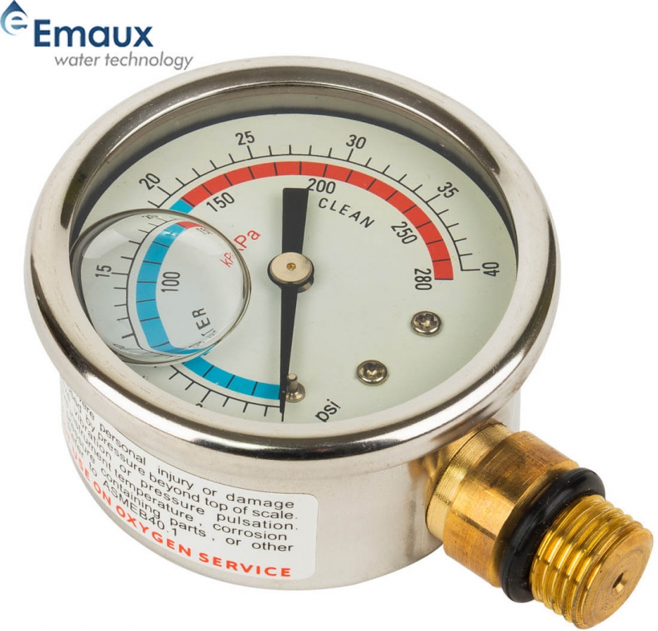 Манометр Emaux в стальном корпусе разработан для фильтров Emaux с боковым подключением. Манометр предназначен для диагностирования и контроля рабочего давления воды. Манометр Emaux защищает фильтр от перегрузок, тем самым продлевает срок службы фильтрационной системы.