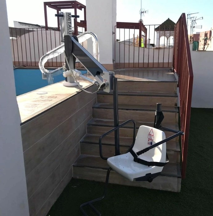 Подъемник METALU 3200 — это стационарное устройство для обеспечения безопасного доступа людей с ограниченной мобильностью к бассейну. Он применяется для использования у обычных бассейнов или бассейнов с небольшими препятствиями, включая надземные конструкции. Это решение подходит для частных и коммерческих объектов, медицинских учреждений и реабилитационных центров.