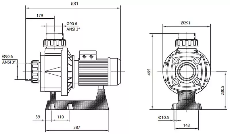 Крыльчатка изготовлена из Noryl пластика, армированного стекловолокном. Двигатель, соответствующий современным нормам энергоэффективности IE3 с валом из нержавеющей стали и керамическими сальниками. Допускается использование в системах с морской/соленой водой. Современный электродвигатель работает с уровнем шума не превышающим 65 дБ.