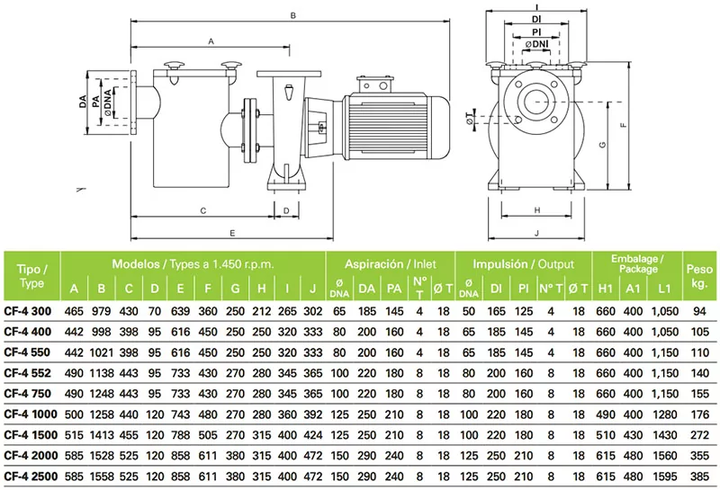 Бренд: AQUAVIVA,Производительность, м3/час: 110,Мощность, кВт: 7.5,Объем бассейна, м3: от 100,Назначение насоса: Самовсасывающий насос с префильтром Категория: Saci СF - 4 300 - 30 м3/час, 2,2 кВт, 400 В насос для бассейна