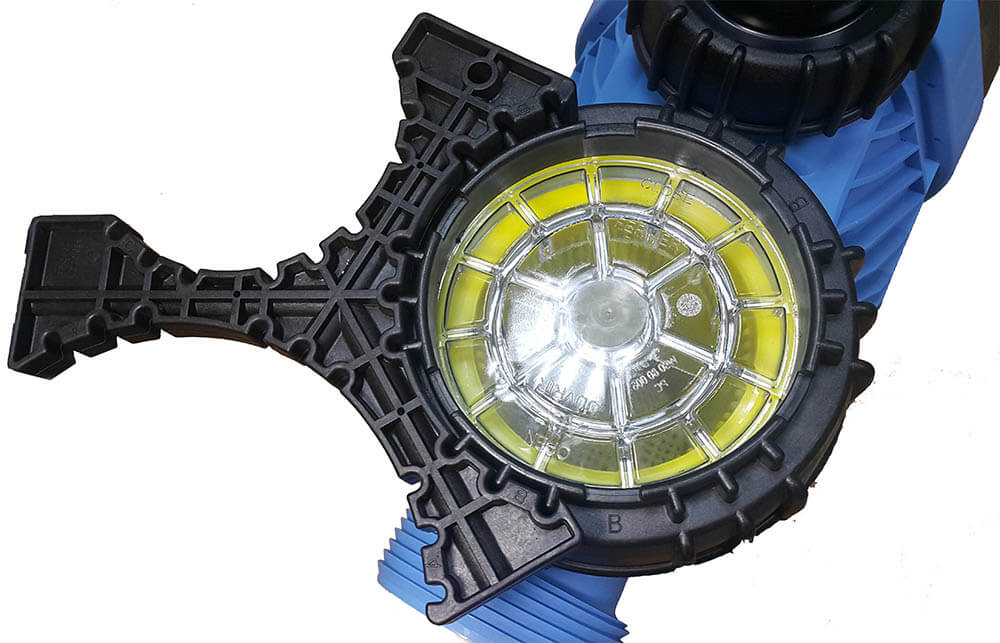 Блок грубой очистки улавливает крупный мусор, защищая гидроблок от механических повреждений и износа. Увеличенный размер корзины грубой очистки (3 л) позволяет увеличить интервалы между чистками. Корзина грубой очистки закрыта прозрачной крышкой для удобного контроля уровня загрязнения, ключ для быстрого съёма крышки входит в комплект, дополнительный инструмент не требуется. Гидроблок изготовлен из термопластика, армированного стекловолокном и усиленного ребрами жесткости.