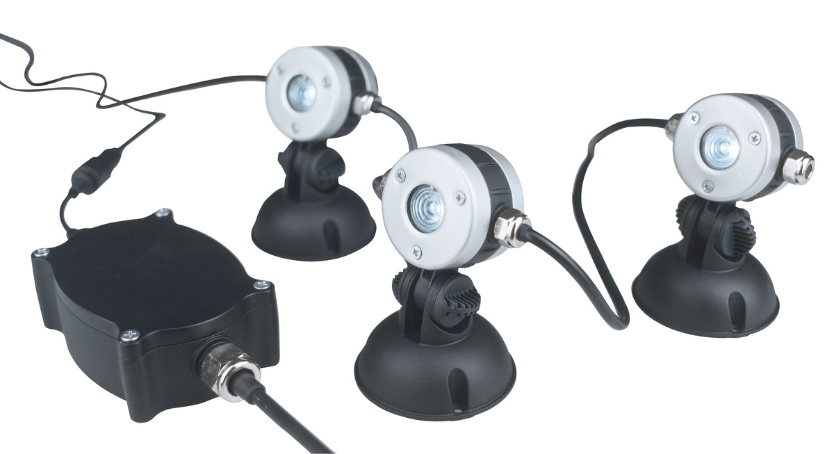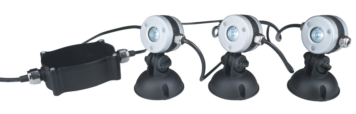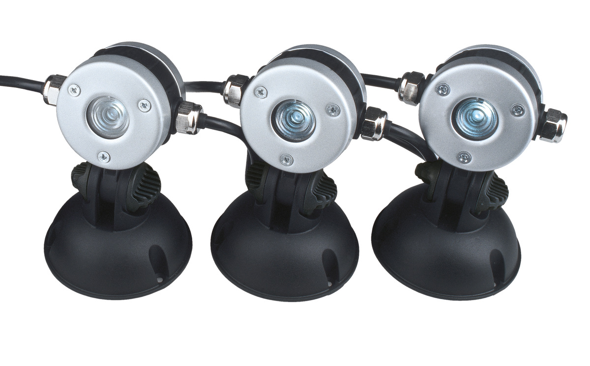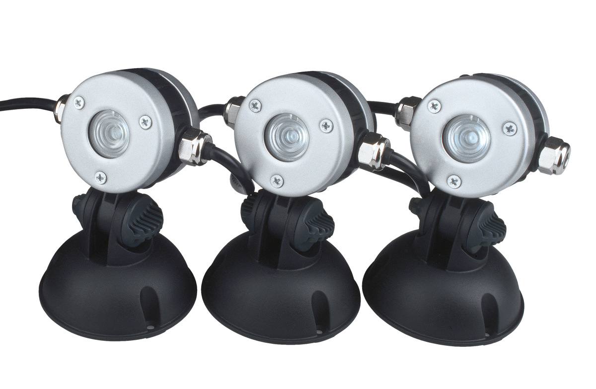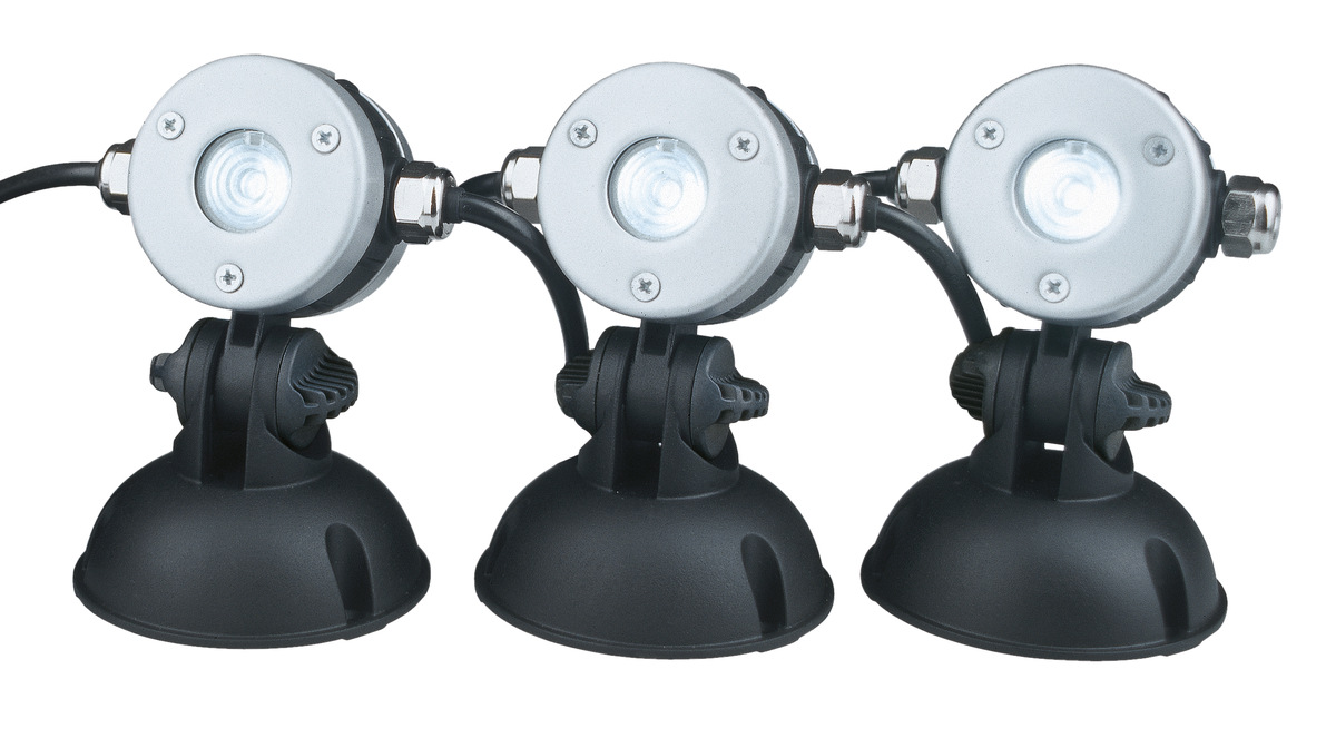 В данном случае вы имеете дело сразу с 3 LED светильниками, которые подключаются последовательно. Клас защиты IP 68 позволяет использовать светильник как под водой, так и над водой. Небольшой размер светильников является их преимуществом, благодаря которому они легко впишутся практически в любой экстерьер. С помощью такого осветительного прибора можно осветить пруд, фонтан, сад или террасу. Детали светильника изготовлены из нержавеющей стали. Угол наклона светильника легко регулируется.